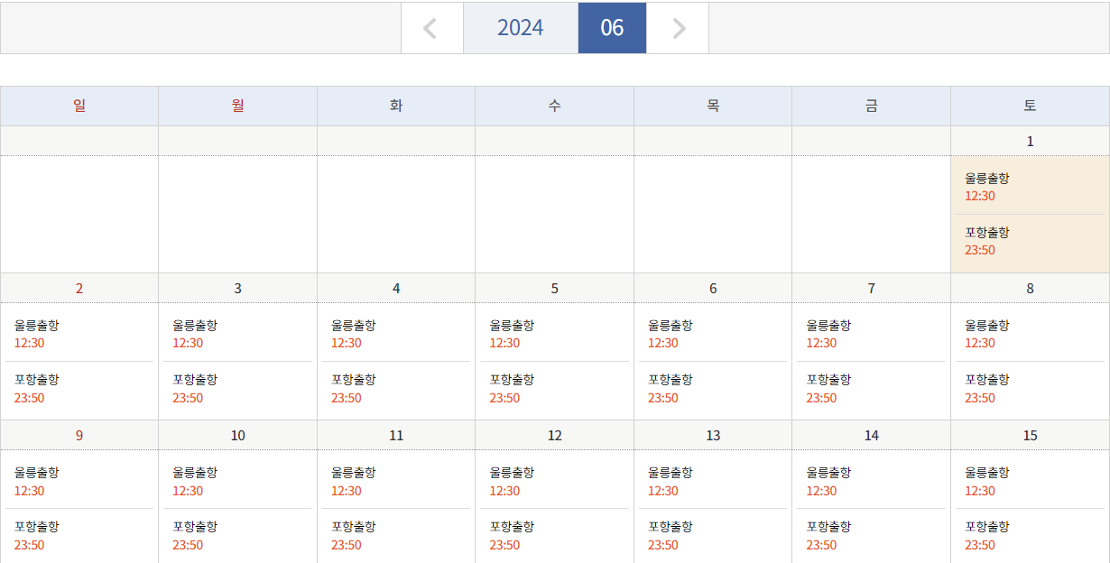 울릉도 배편 운항 시간표를 보면 하루에 한 편의 출항을 보실 수 있습니다.