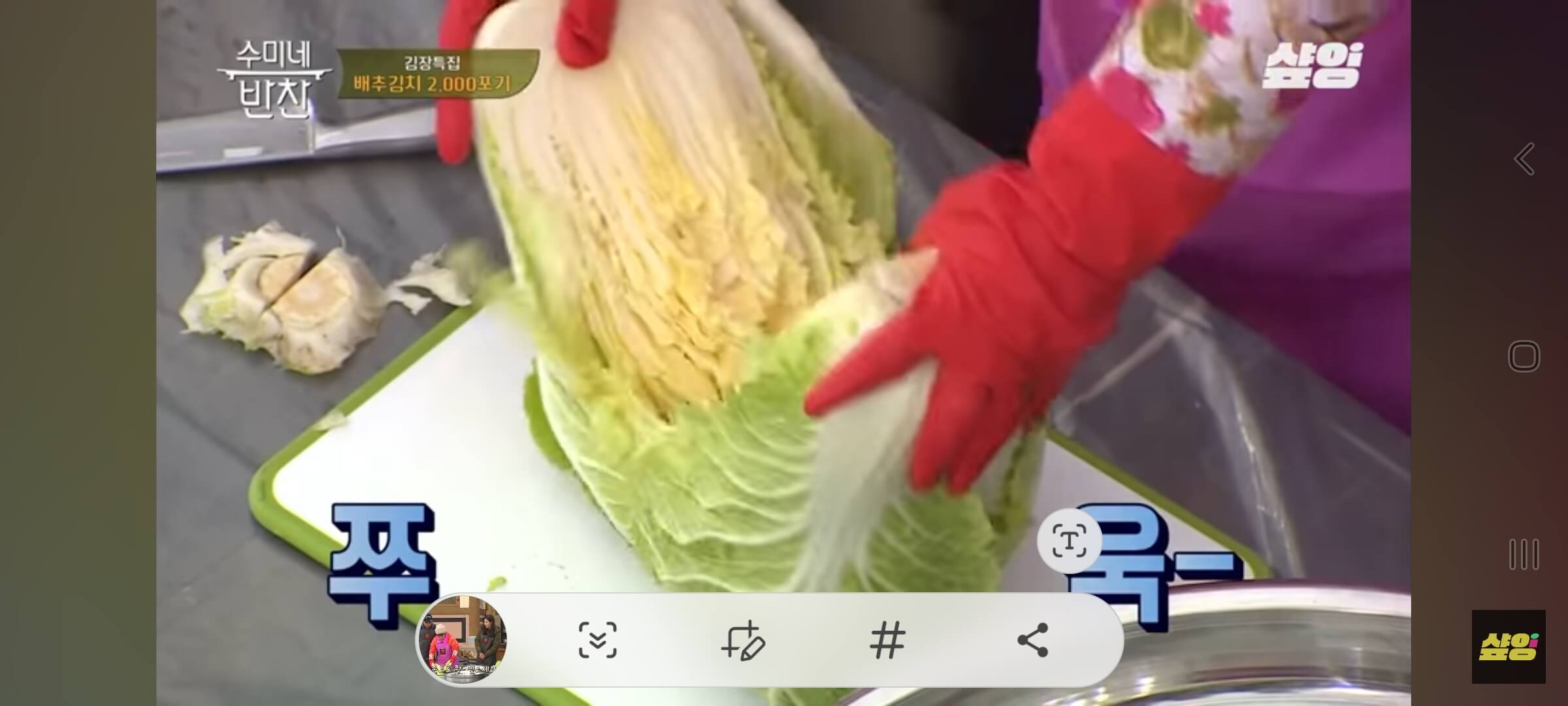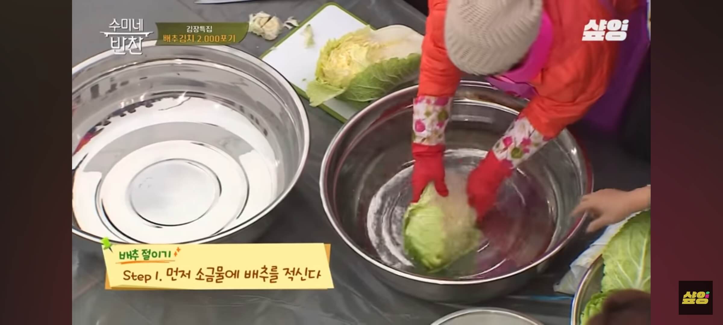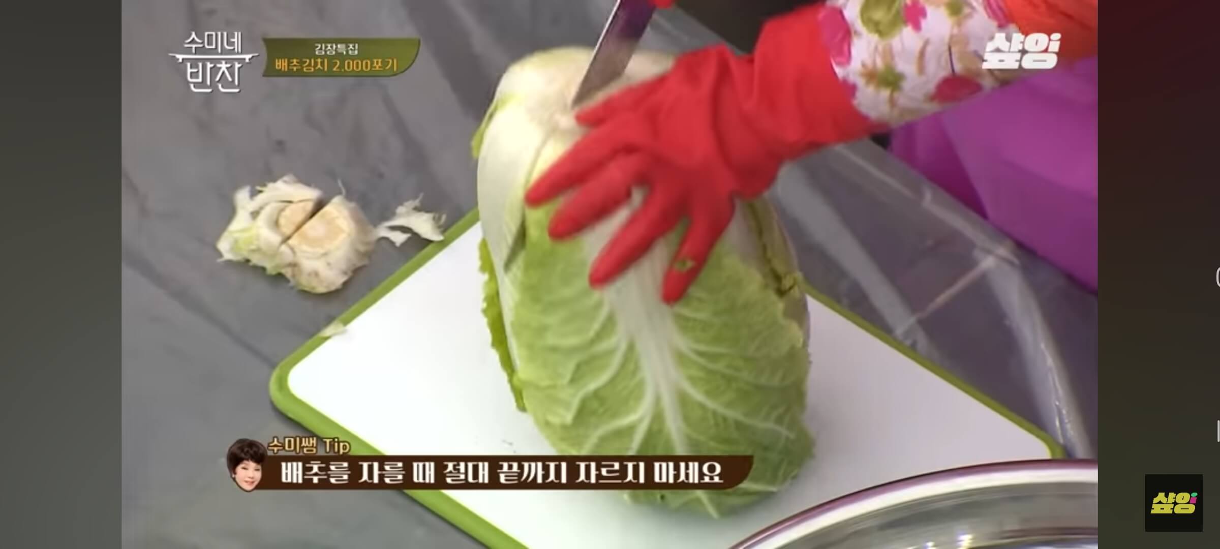 배추 자르는 것도 방법이 있다고 합니다. 김수미 선생님께서 배추 자르기는 아주 중요하다고 강조합니다.
